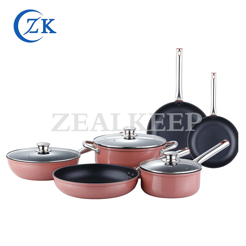 Encontre uma grande seleção de conjunto de panelas antiaderentes de alumínio com borda rolada de vidro da China na Zealkeep. O conjunto de panelas antiaderentes de alumínio com borda laminada Zealkeep conta com sua acessibilidade e excelentes características de transmissão de calor que se tornam confiáveis e indispensáveis na vida diária.